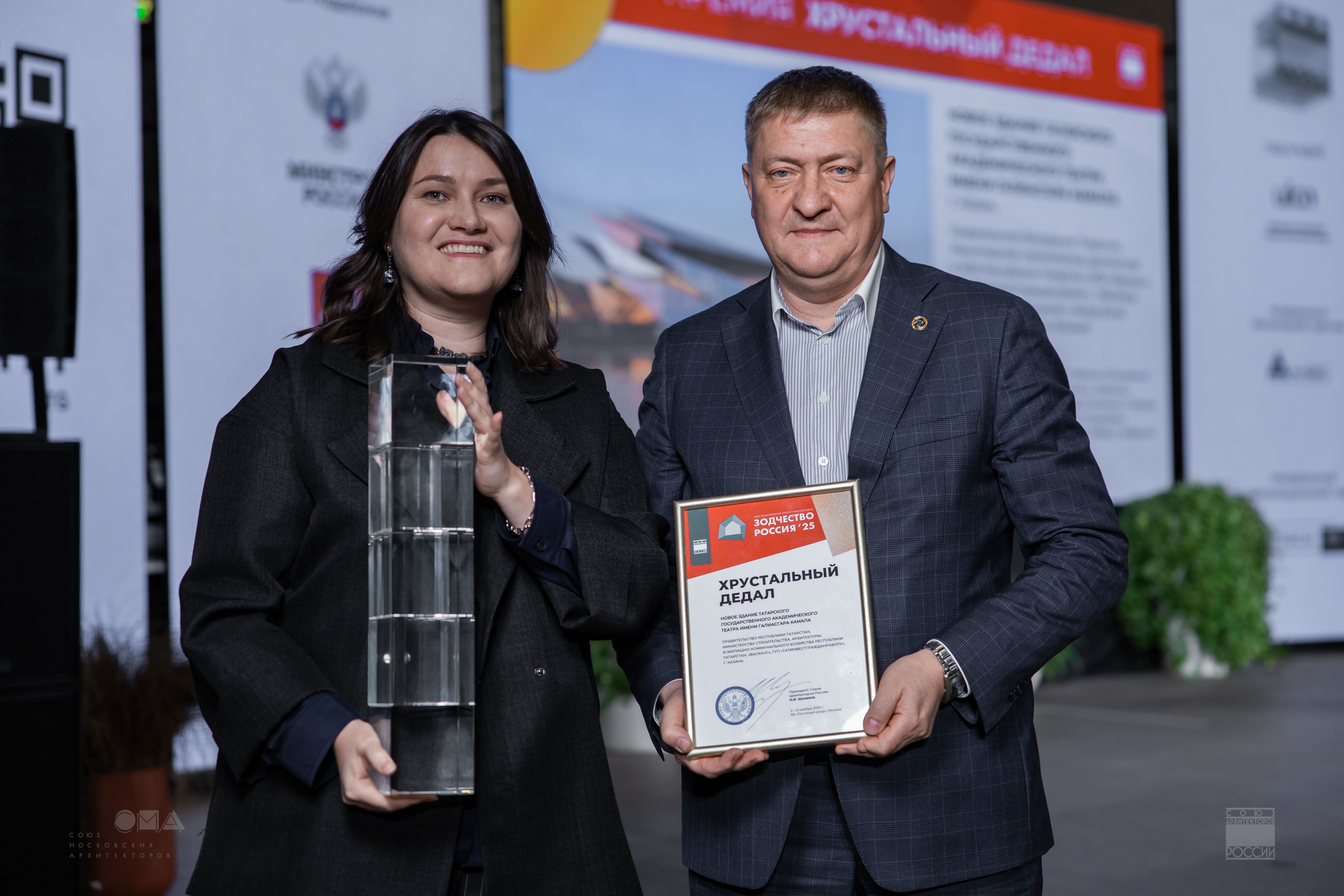 «Хрустальный Дедал», который является главной наградой среди построек, в этом году уехал в Казань. Им отмечена работа «Новое здание Татарского государственного академического театра имени Галиасгара Камала», представленная Правительством Республики Татарстан, Министерством строительства, архитектуры и жилищно-коммунального хозяйства Республики Татарстан, ООО «Ваухаус» и ГУП «Татинвестгражданпроект».