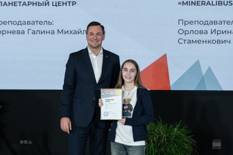 Золотой знак за новаторство и связь с традицией русского деревянного зодчества