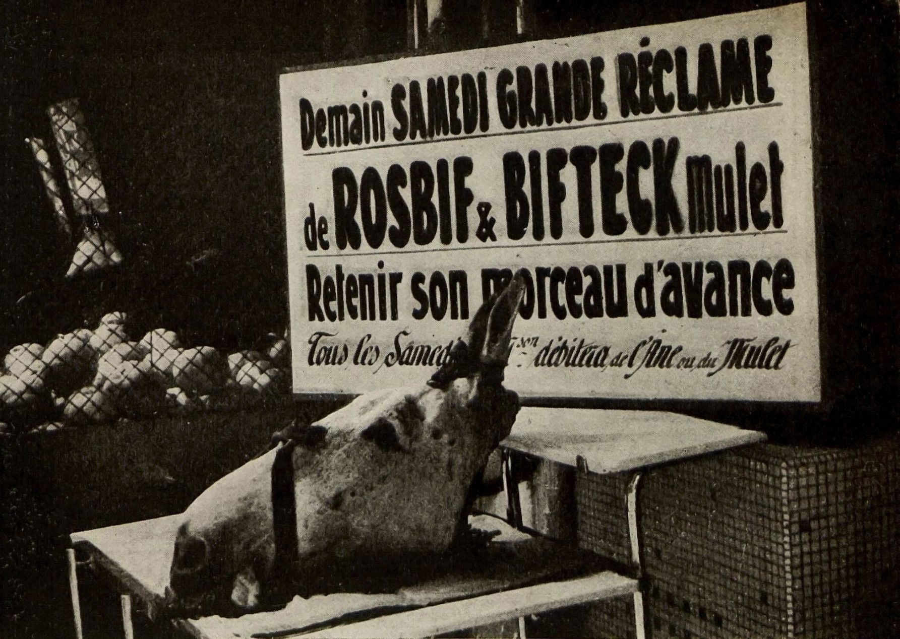 «Завтра в субботу рекламная ростбифа и бифштекса из мула. Задержите кусок заранее. По субботам продажа мяса осла или мула»