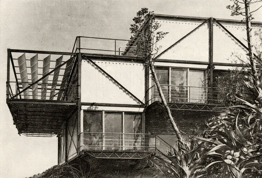 Диапазон применения «хай-тек» в жилище довольно широк — от строительства загородных особняков до оборудования «минимального жилища». Архитектор X. Шулитц построил для себя дом в Беверли-Хиллз, Калифорния (1977), на «бросовом» участке с уклоном в 40°. Основа постройки была смонтирована за два часа из стандартных элементов металлического каркаса, цельностеклянных и металлических панелей, используемых для сборных промышленных и складских зданий. Дом оборудован стандартной конторской мебелью и лабораторными светильниками. Угловатость этого подобия игрушки, собранной из нехитрых элементов детского «конструктора», эффектно сочетается с причудливо-живописным природным ландшафтом каньона. Этот контраст определяет как экстерьер, так и широко раскрытые вовне интерьеры. В подобный «индустриальный ассамбляж», сооруженный для себя английским архитектором Хопкинсом в Хэмстеде (1978), достаточно естественно вписалась стандартная стальная винтовая лестница с перфорированными подступенками.