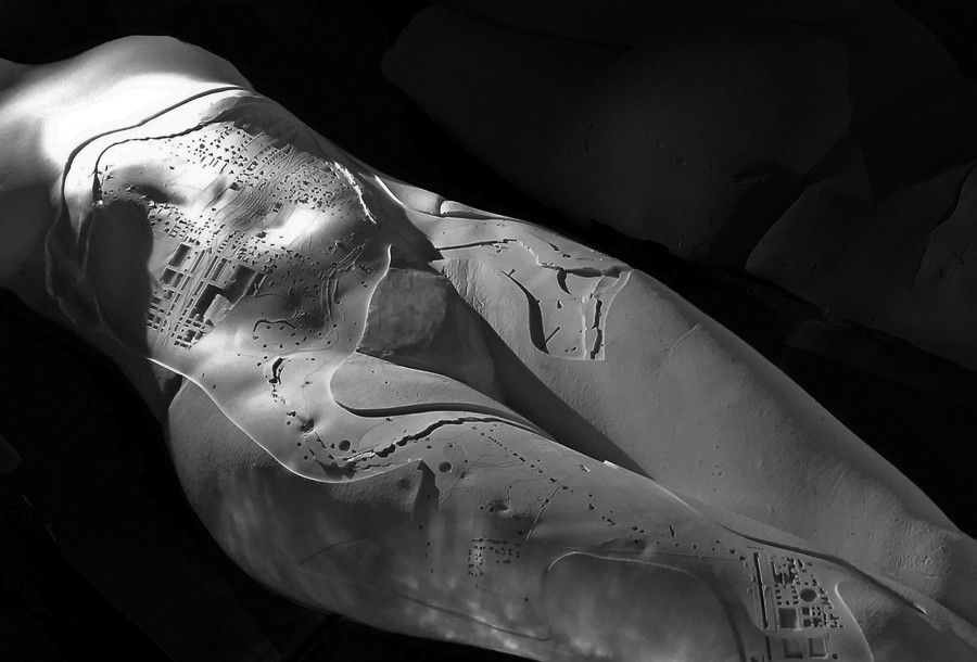 В этой инсталляции для выставки «АРХ Москва» мы решили показать наши проекты в виде оттисков на стелах. В проект заложено повествование, как будто плиты были затеряны в недрах земли и найдены будущим поколением в ходе раскопок. В гипсе запечатлён полилог четырёх форм архитектуры: города, поселения, квартала и интерьера. Мы считаем, что в будущем архитектура будет существовать без людей, так как все люди уйдут в медийное пространство и физически уже не будут взаимодействовать с миром. Архитектура будет одинокой, что и демонстрируют стелы, обращённые друг к другу и общающиеся между собой. Они существуют уже в нематериальной форме и выставлены как напоминание о прошлой материальности среды обитания.