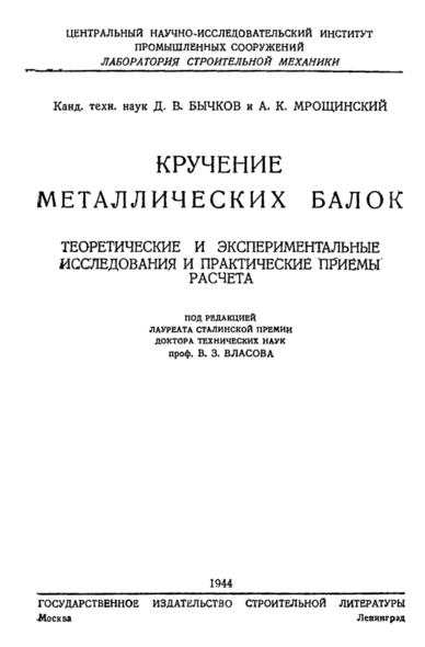 Книга содержит изложение основных-положений новой теории расчета тонкостенных стержней, а также описание и результаты экспериментов, проведенных авторами в ЦНИПС, подтверждающих правильность этих положений, и предназначена для использования при проектировании элементов металлических конструкций. Книга снабжена в большом количестве таблицами, графиками и числовыми примерами, которые должны содействовать распространению изложенных методов расчета среди инженеров-проектировщиков, для которых она явится весьма важным пособием. Книга рассчитана на инженеров-проектировщиков, аспирантов и научных работников.