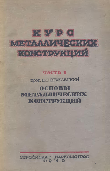 Книга представляет собой второе переработанное и дополненное издание первой части курса металлических конструкций промышленных и гражданских сооружений и соответствует программе для строительных факультетов. В книге помещены следующие разделы. Общие установки по проектированию и осуществлению металлических конструкций и общий их обзор; нагрузки, материал, определение прочности и сортамент металлических конструкций; заклепочные, болтовые и сварные соединения; расчет и конструирование балок, ферм, колонн и рам. В конце книги приложена подробная библиография по металлическим конструкциям. Книга является руководством для студентов и аспирантов при изучении металлических конструкций, а также пособием для инженеров при проектировании.