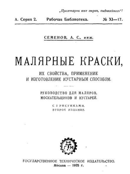 Малярные краски, их свойства применение и изготовление кустарным способом. Руководство для маляров, москательщиков и кустарей