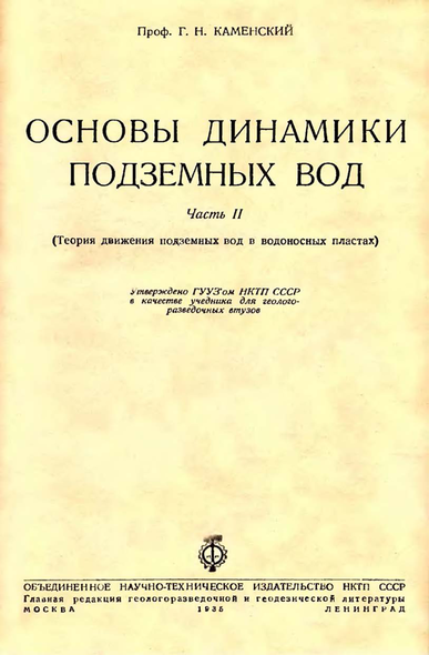 В книге профессора Каменского Г. Н. «Динамика подземных вод», ч. II кроме изложения основных законов подземных вод много внимания уделяется движению подземных вод в неоднородных пластах, что отвечает обычно существующим гидрогеологическим условиям. Эта книга резко отличается от существующей литературы по динамике подземных вод, исходящей из искусственного представления об однородном строении водоносных пород. Кроме изложения теории автор приводит многочисленные практические примеры и задачи из практики строительства в СССР, что делает книгу особенно ценной. Предназначенная в первую очередь восполнить пробел в существующей учебной литературе по гидрогеологии для соответствующих специальностей втузов, книга безусловно будет полезна всем специалистам, в своей работе имеющим дело с явлениями динамики подземных вод.