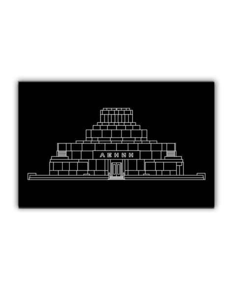 Мавзолей В.И. Ленина, открывшийся в октябре 1930 года, стал одним из самых заметных произведений Алексея Щусева. Это уникальное, не имеющее прямых аналогов сооружение представляет собой квадратный в плане объем шириной 24 и высотой 12 метров. Зодчий смог решить сразу несколько задач. Во-первых, создать дополнительный композиционный акцент на Красной Площади, дополнив высотные силуэты кремлевских башен, здания Сената и центрального ризалита Верхних торговых рядов ГУМа, во-вторых, – создал точку визуального притяжения на фоне прясел кремлевской стены у Сенатской башни, не столь выразительной по архитектуре, как Спасская или Никольская. Мавзолей Ленина стал предвосхищением массового вхождения в архитектуру новой стилистики ар-деко с блеском упрощенных монументальных форм, облицованных натуральным камнем. Данное изделие представляет собой уникальный сувенир, изготовленный из магнитного винила с печатью белой краской прямо по материалу. Изображение на магните является полной восстановленной копией оригинального чертежа архитектора Алексея Щусева. Магнит гнется во всех направлениях и может быть смонтирован почти на любых металлических поверхностях, повторяя их форму. Штуковина упакована в полиэтиленовый пакет и может быть отличным подарком.